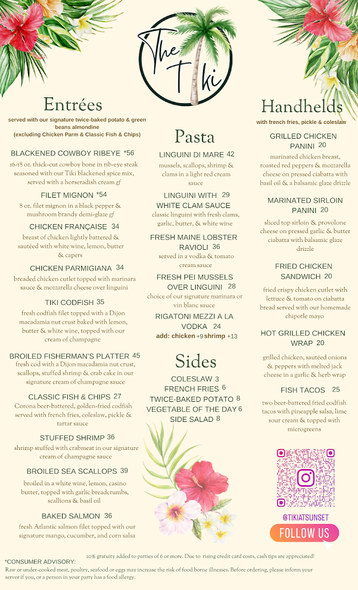 Welcome to The Tiki Bar At Sunset Harbour, a hidden gem located at 90 Colonial Dr, East Patchogue, NY. This vibrant venue combines a laid-back atmosphere with an enticing menu that captures the essence of summer. Guests are greeted by a friendly and attentive staff, ensuring a delightful dining experience.